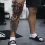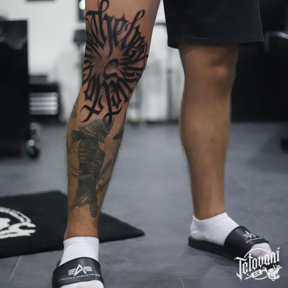 Tetování nápisy, písmena na koleno