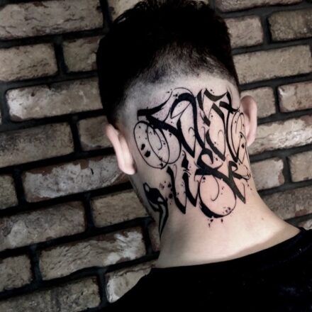Tetování nápisy, písmena na krk