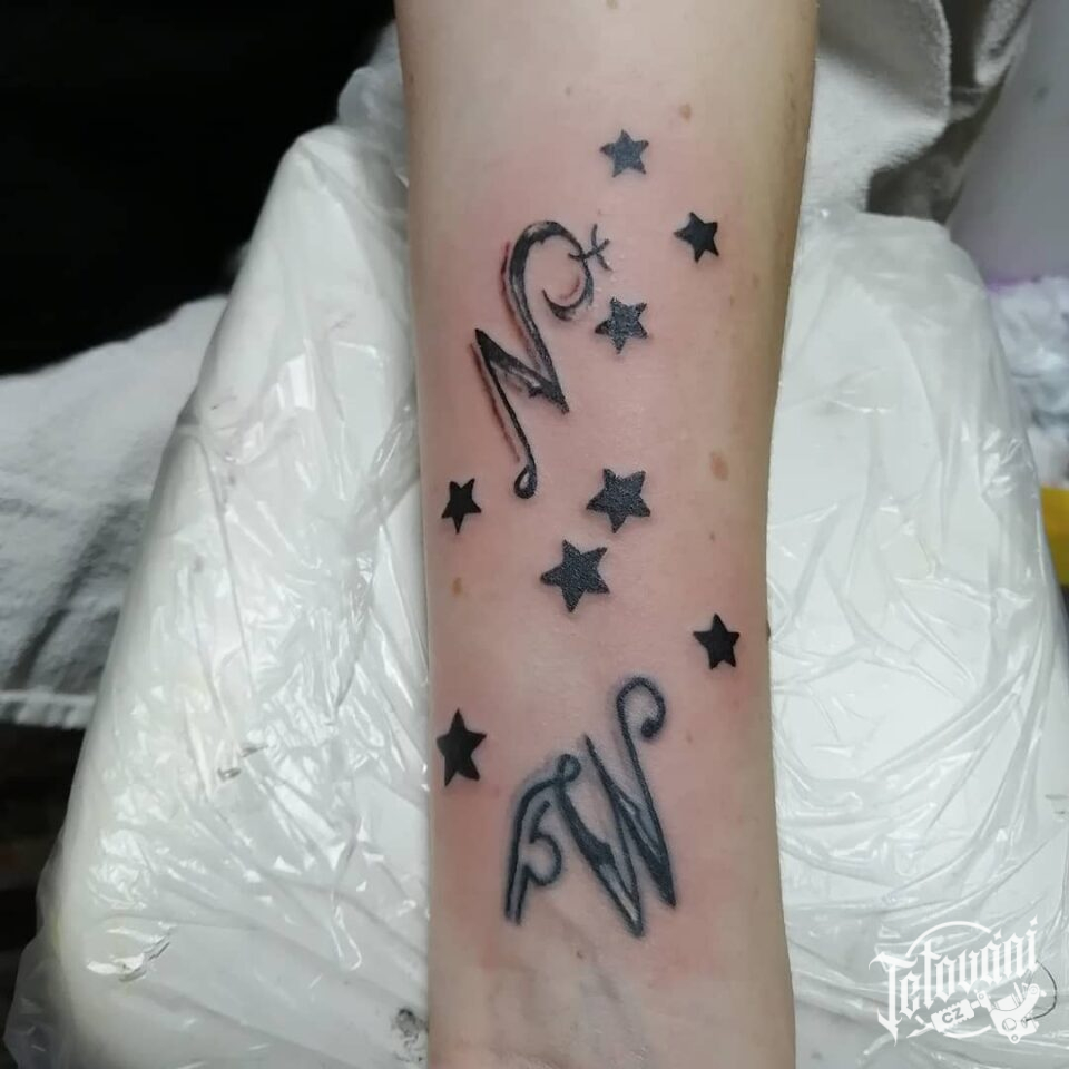 Tetování nápisy, písmena na předloktí