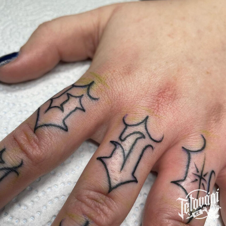 Tetování nápisy, písmena na prstech