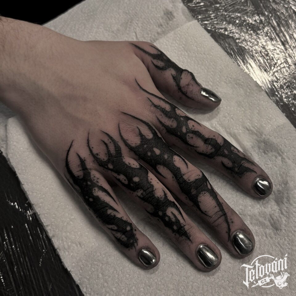 Tetování nápisy, písmena na prsty
