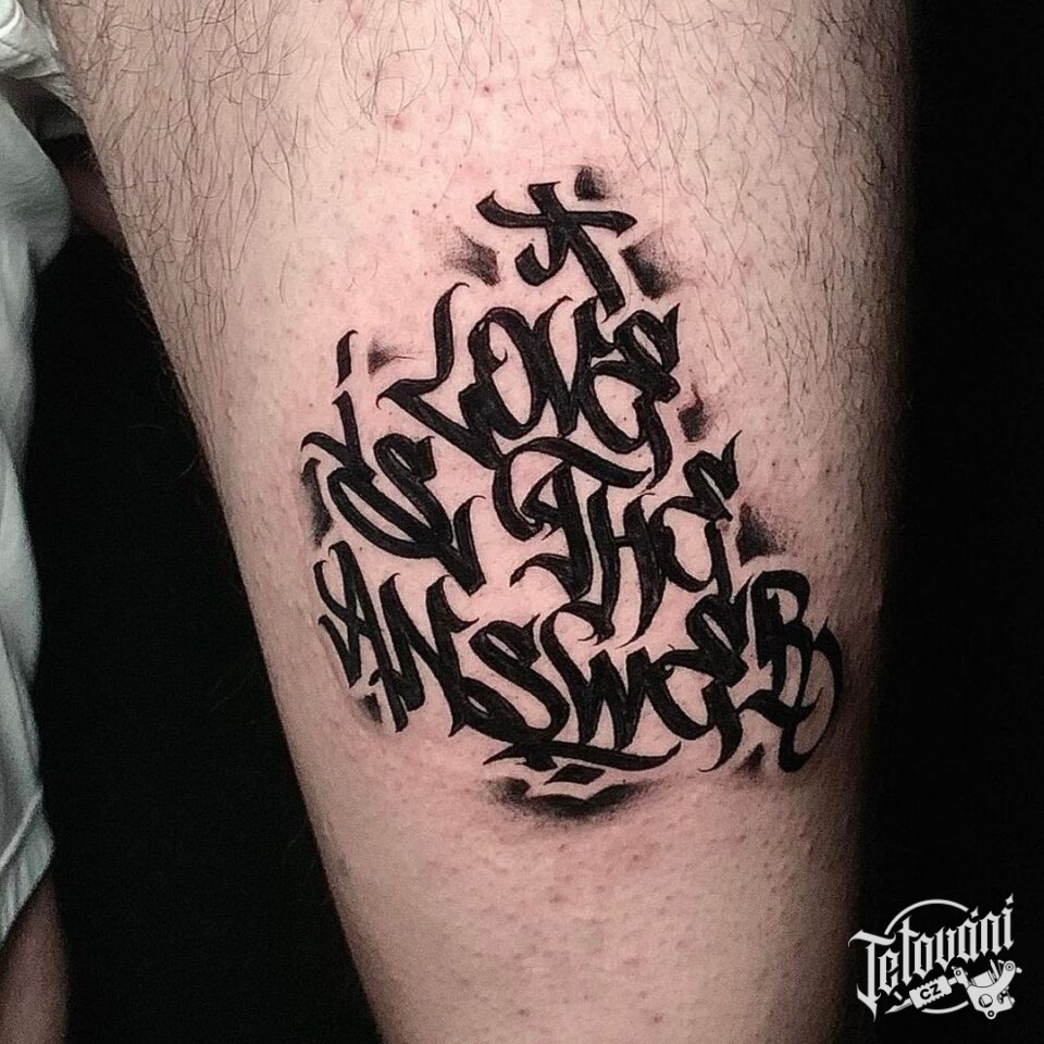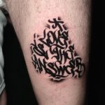 Tetování nápisy, písmena na stehně