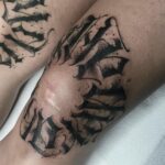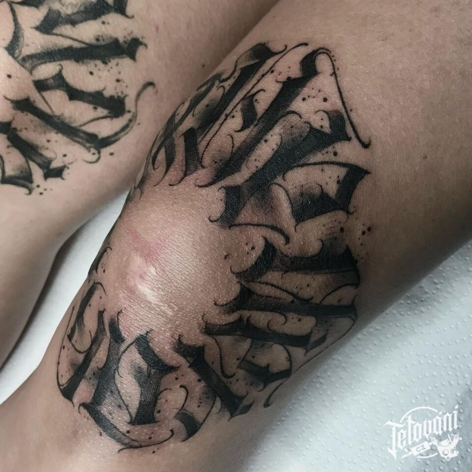 Tetování nápisy, písmena na stehně