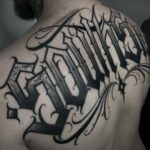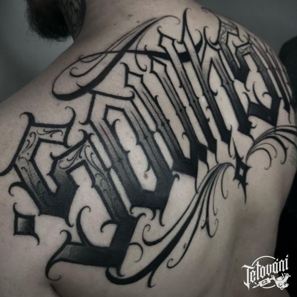 Tetování nápisy, písmena na zádech