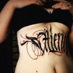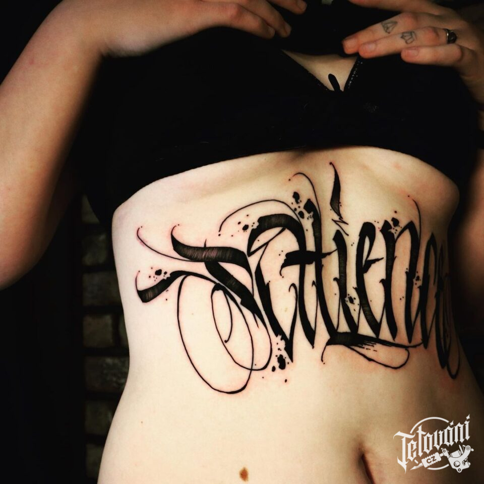 Tetování nápisy, písmena, znaky a symboly na břicho