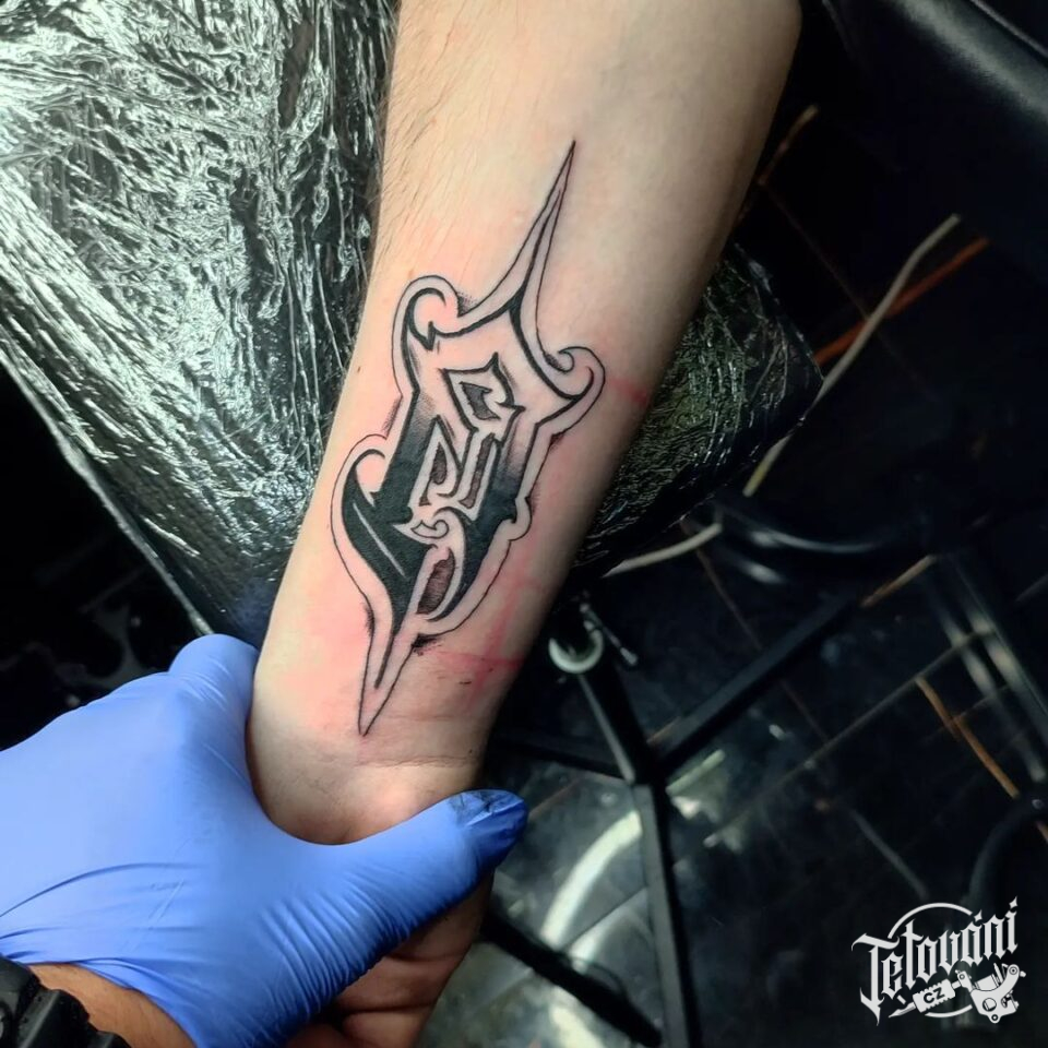 Tetování nápisy, písmeno na předloktí