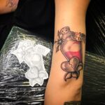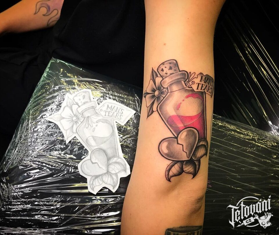 Tetování nápisy, symbol, srdce, květina na předloktí