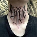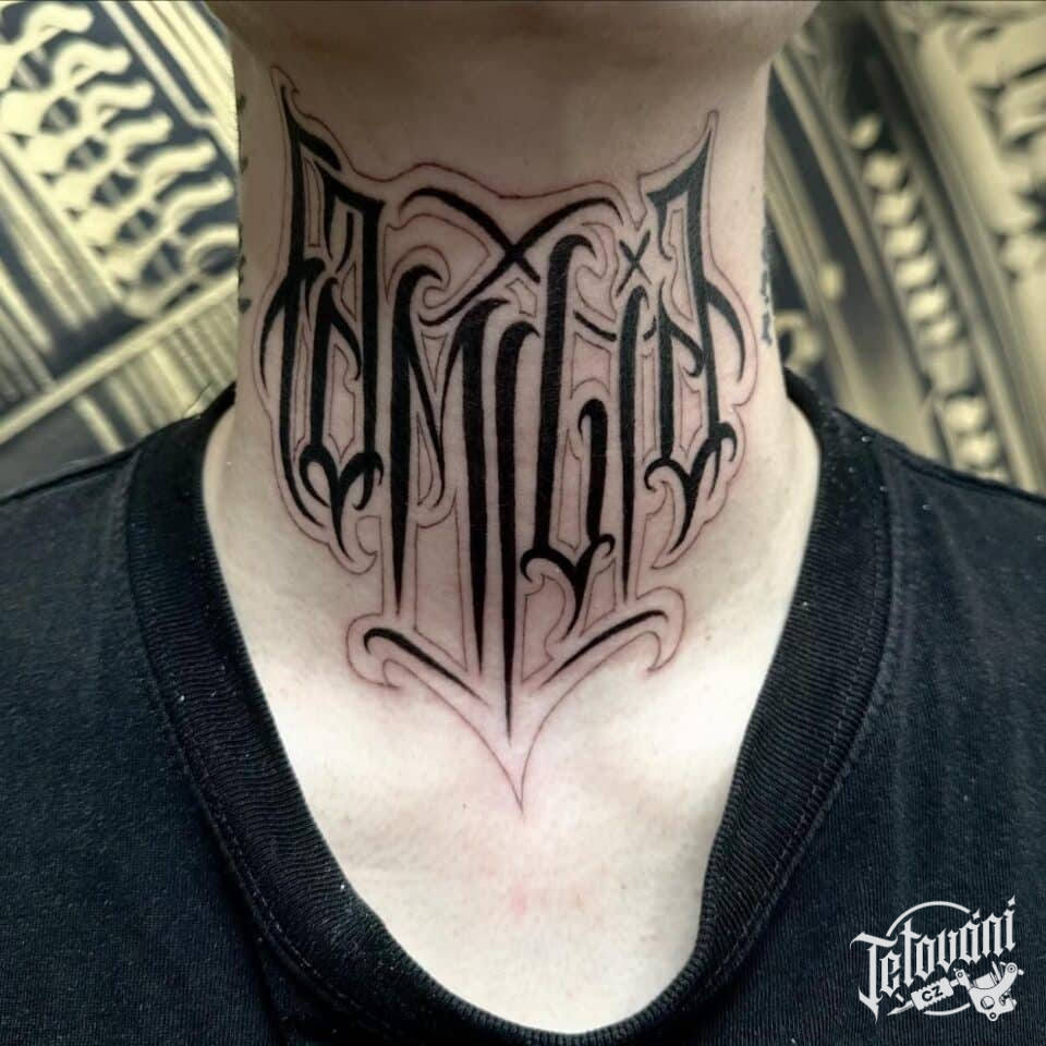 Tetování nápisy, symboly na krk