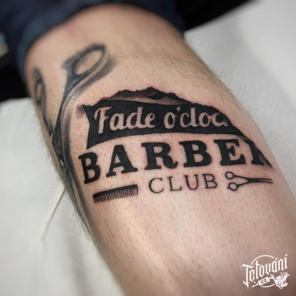 Tetování nápisy, symboly nůžky na holeň