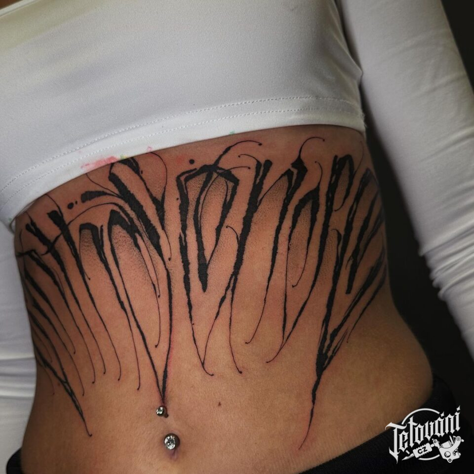 Tetování nápisy, znaky a symboly, písmena na břicho