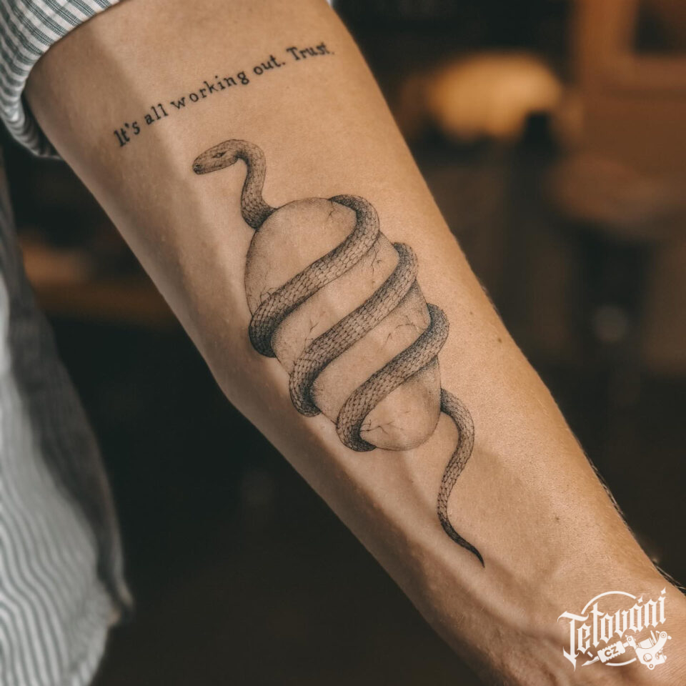Tetování nápisy, zvíře, had na předloktí