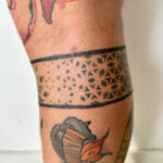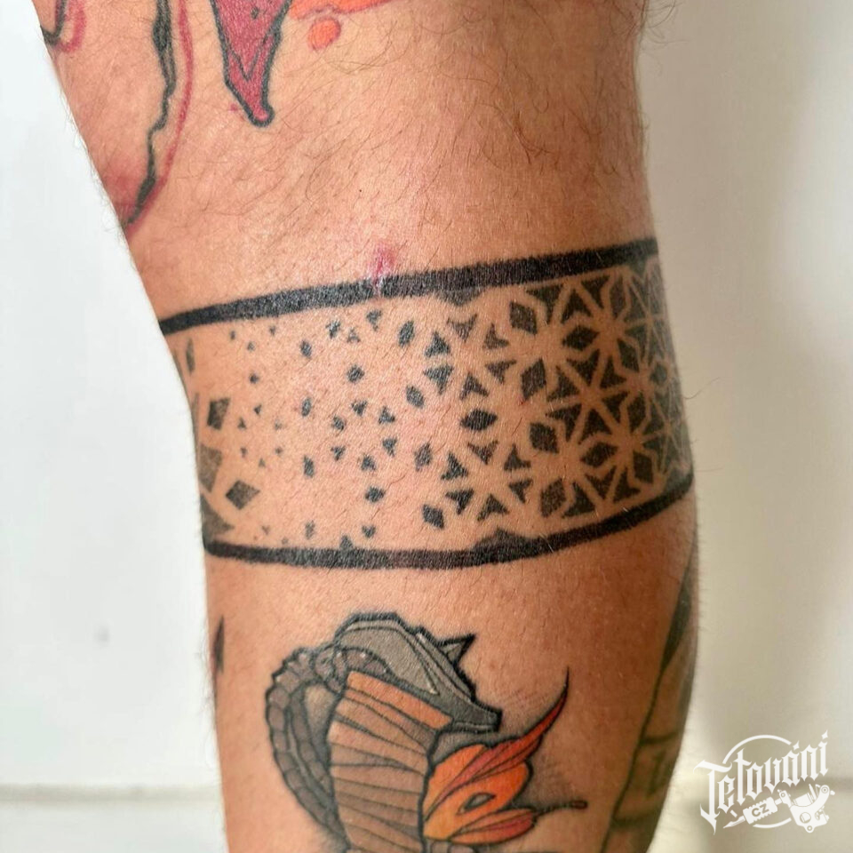 Tetování náramek s geometrickými tvary okolo lýtka