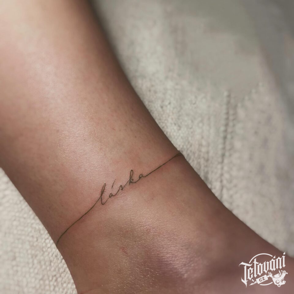 Tetování náramek s nápisem na kotník