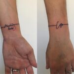 Tetování náramek s nápisy, srdce na zápěstí