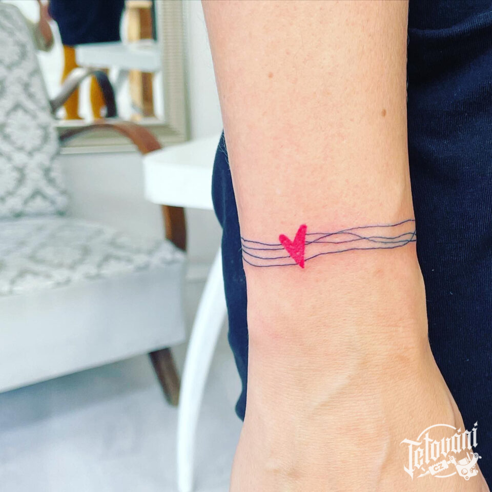 Tetování náramek se srdcem na zápěstí