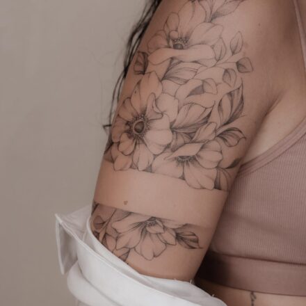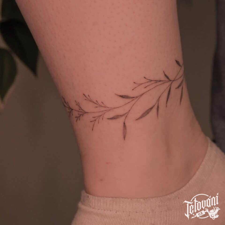 Tetování náramek z květin na lýtko