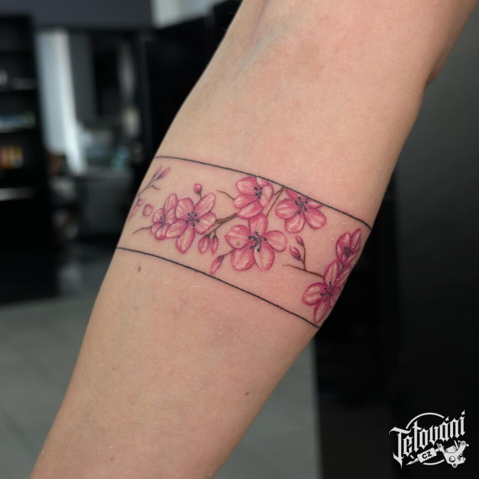Tetování náramek ze Sakury, květina na předloktí