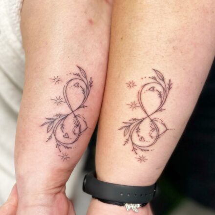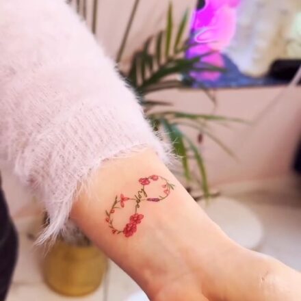 Tetování nekonečno, ležatá osmička a srdce na ruce