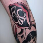Tetování lebka, symboly na lýtko