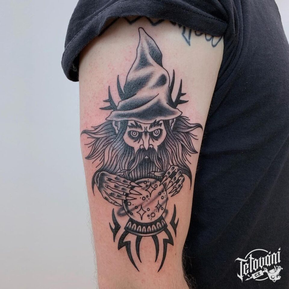 Tetování nadpřirozená bytost, hvězdy, symbol na rameno