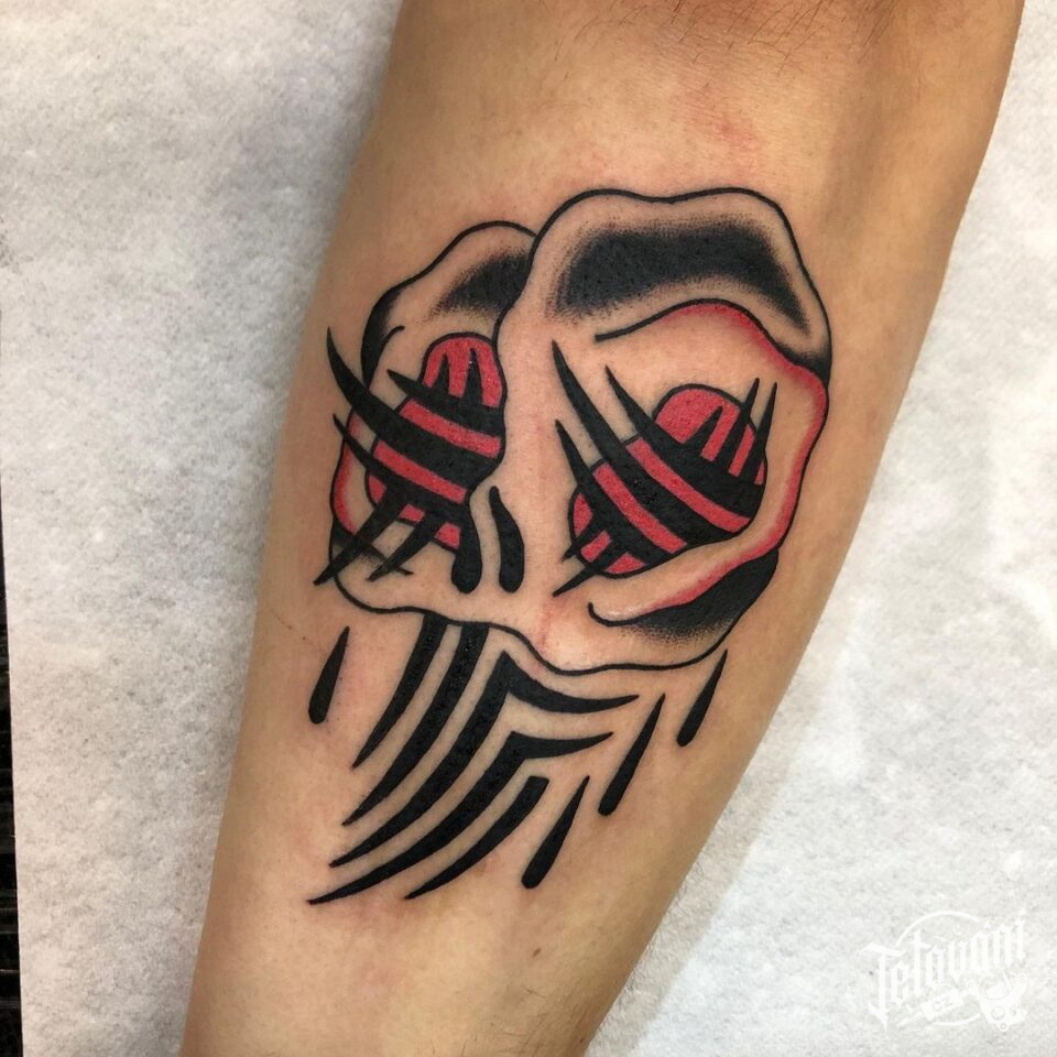 Tetování neo traditional, symbol, lebka na předloktí