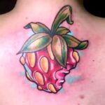 Tetování neo traditional, symbol zdraví, jahoda na páteř