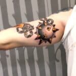 Tetování neo traditional, znaky a symboly, koule s ostny na paži
