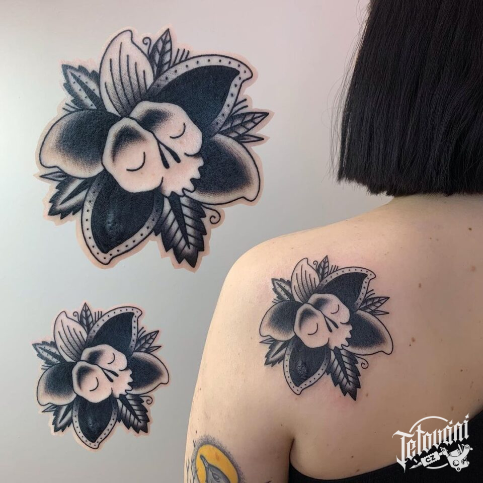 Tetování neo traditional, znaky a symboly na lopatku