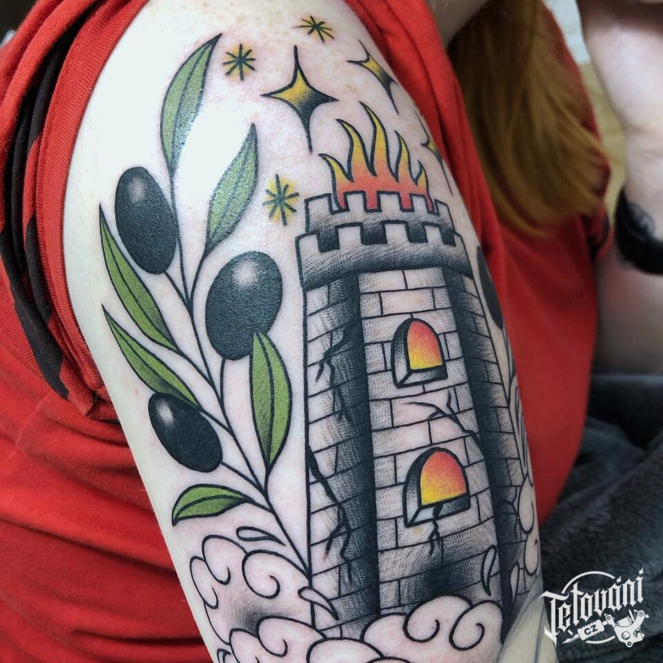 Tetování znaky a symboly, větvička, hvězdy na rameno