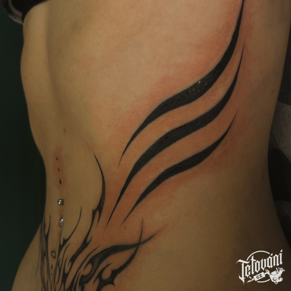 Tetování neo tribal ornamenty a čáry na břicho