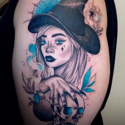 Tetování nepřirozené bytosti, čarodějnice na rameni