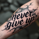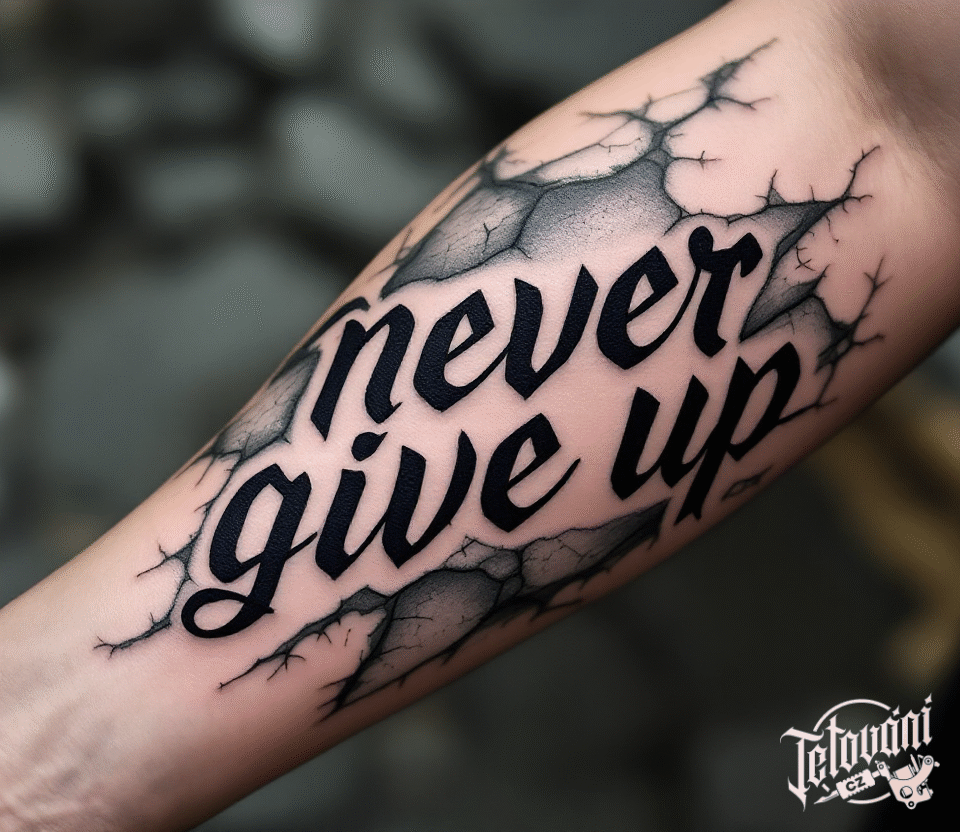 Tetování never give up, nápisy na předloktí