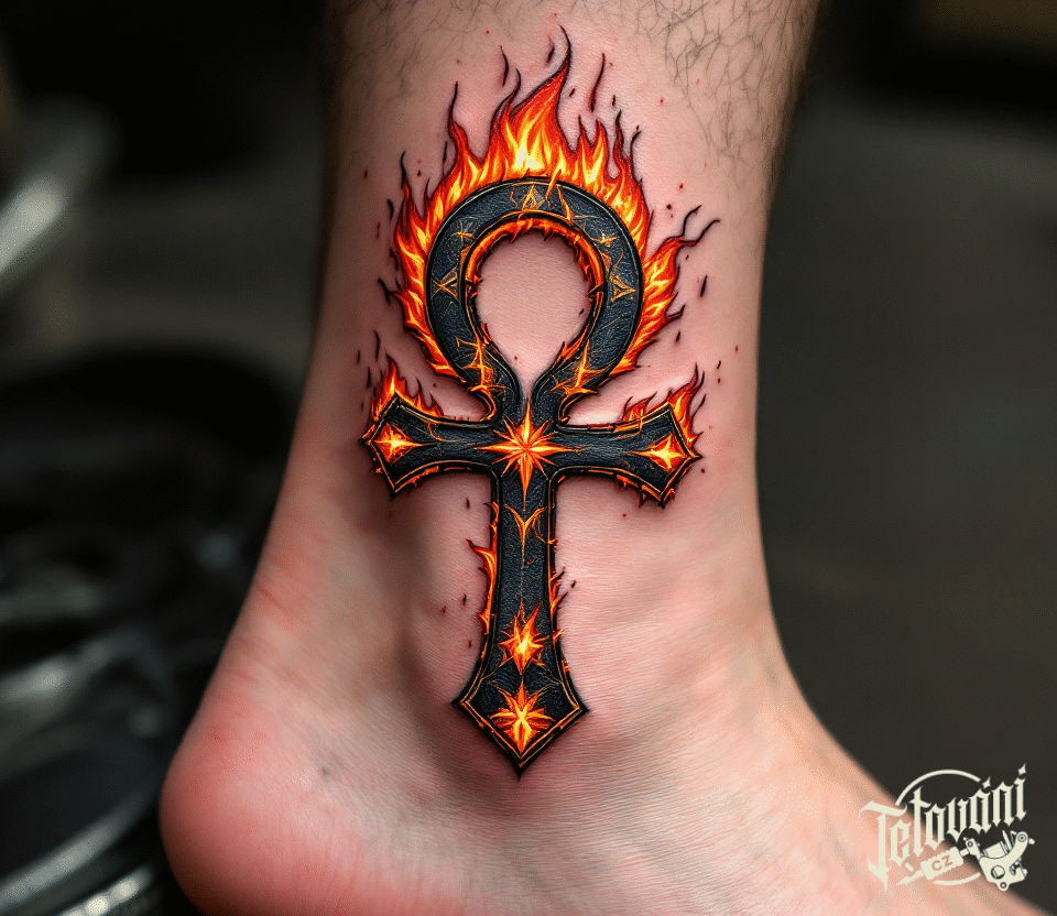 Tetování nilský kříž na kotníku