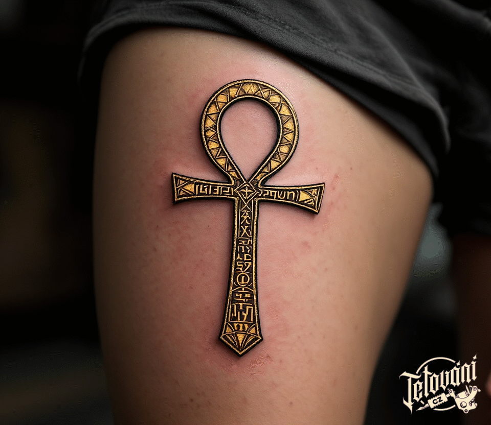 Tetování nilský kříž na stehně
