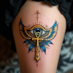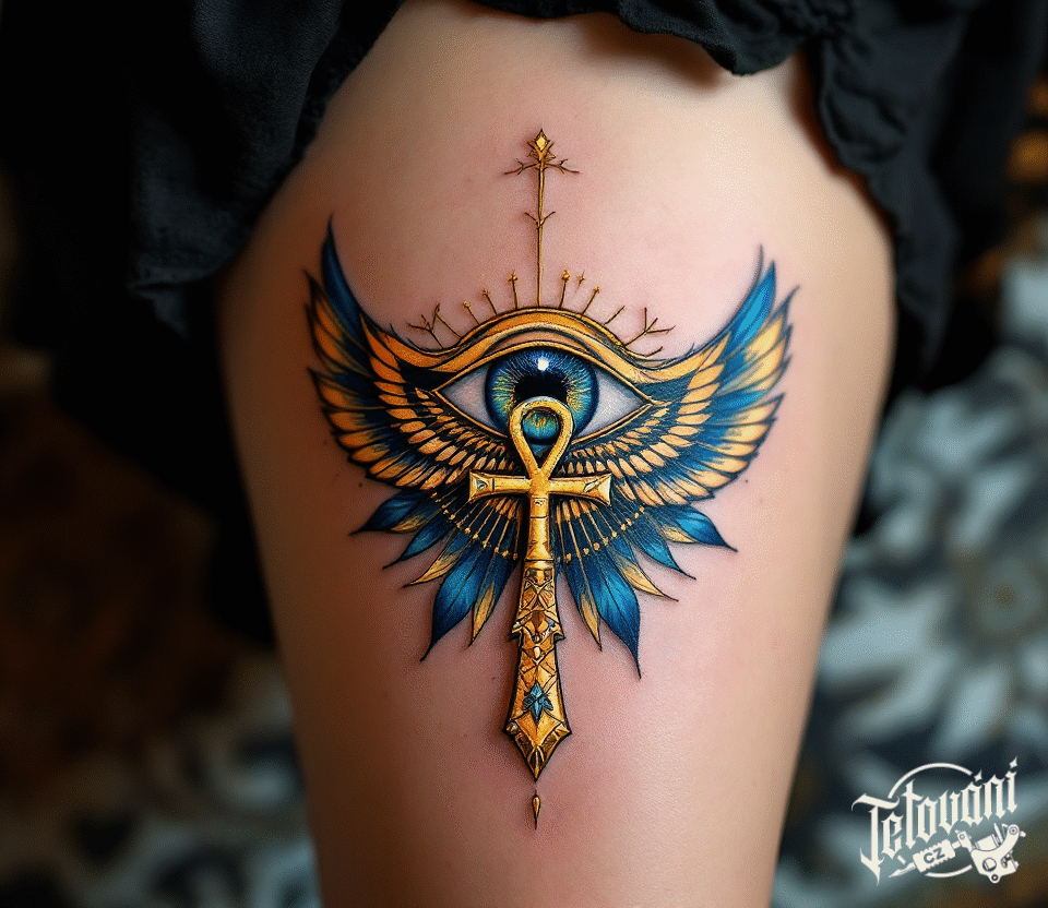 Tetování nilský kříž na stehně