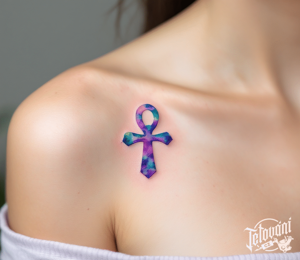 Tetování nilský kříž pod klíční kostí
