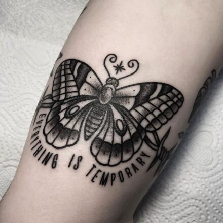 Tetování noční motýl, můra s ornamenty a mandala na rameno