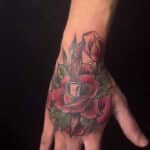 Tetování nůž s růží na hřbetu ruky