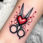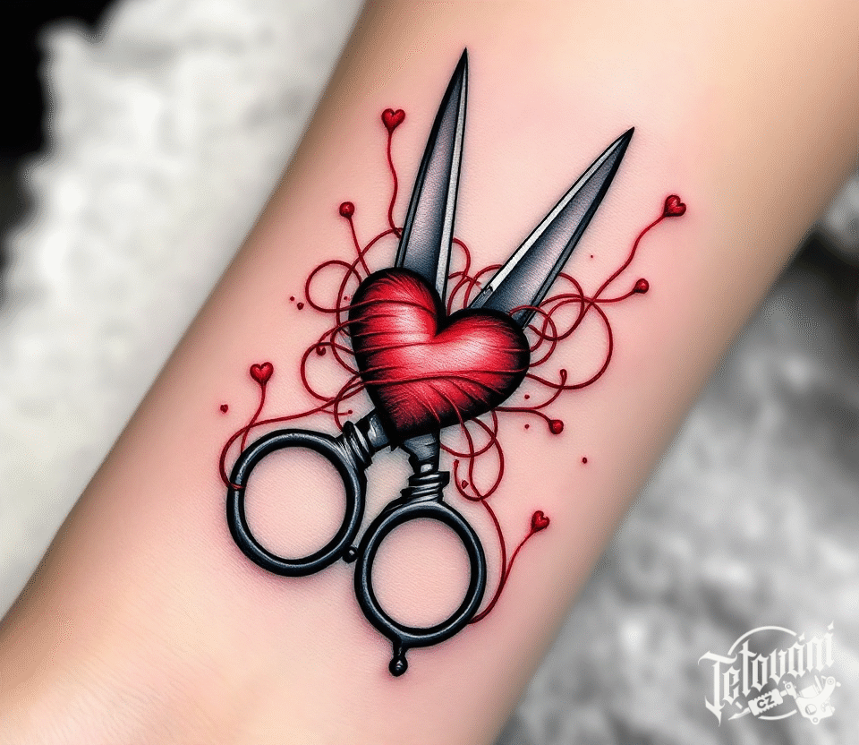 Tetování nůžky, srdce na předloktí