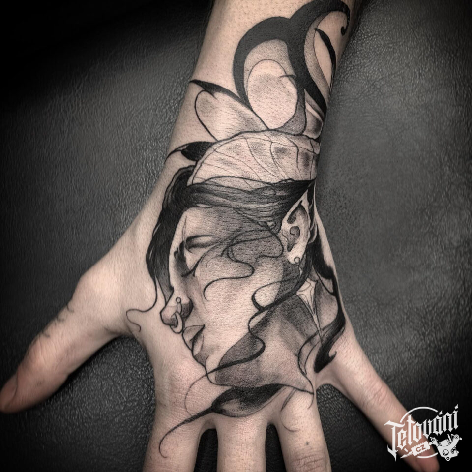 Tetování obličej ženy na hřbet ruky