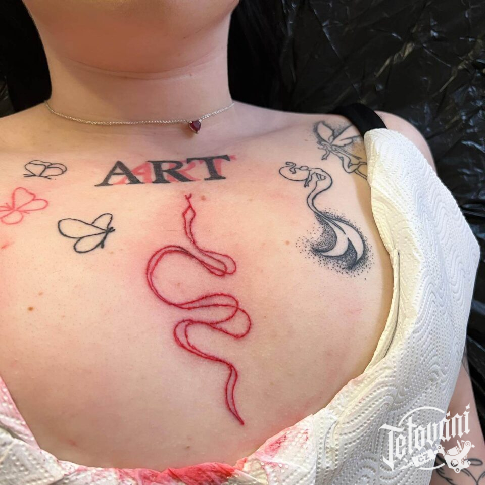 Tetování – obrys had na hrudníku