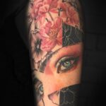 Tetování oči a květiny na rameni
