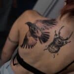 Tetování oči, pták, brouk, zvířata na lopatku