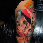 Tetování oči, z filmů a pohádek, nápisy na stehně