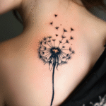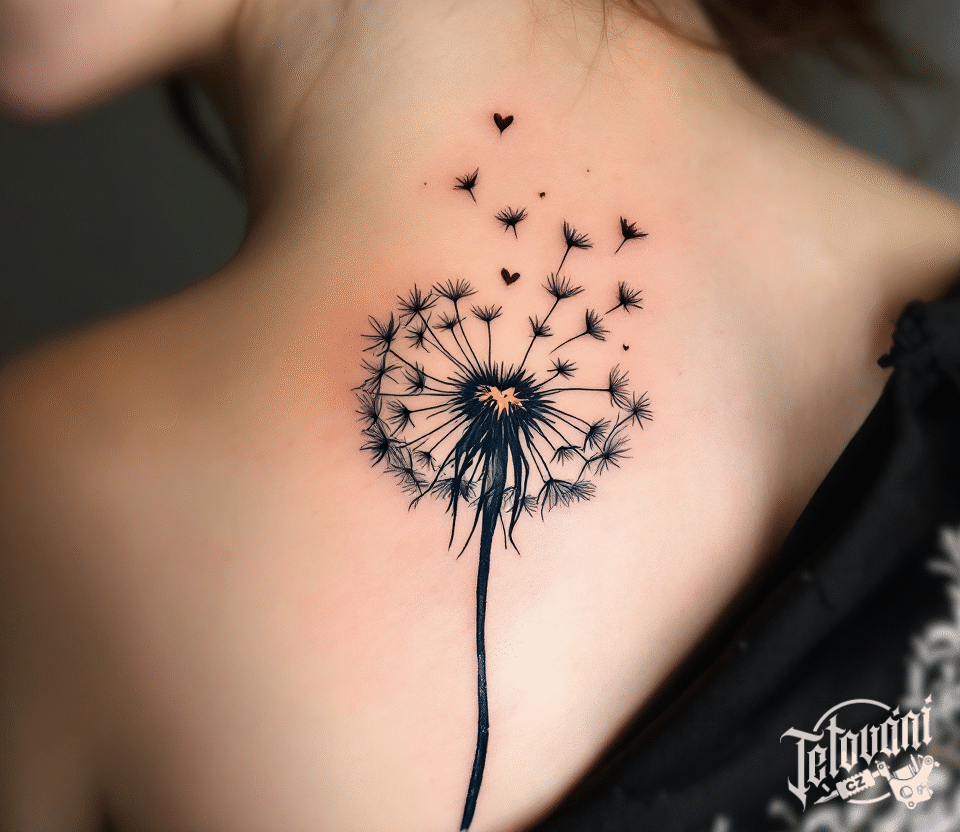 Tetování černá odkvetlá pampeliška na lopatku