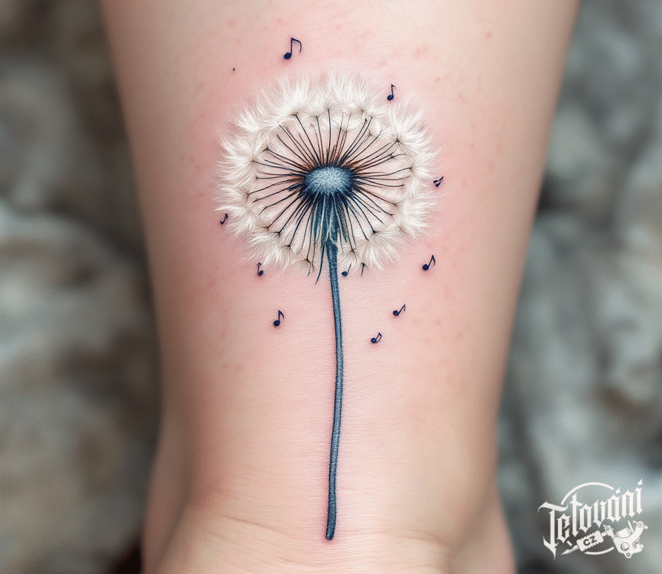 Tetování odkvetlá pampeliška na lýtko