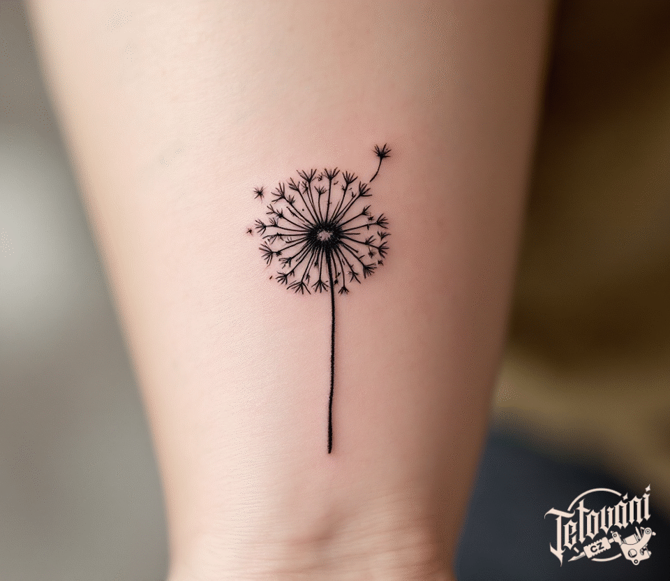Tetování odkvetlá pampeliška na nohu