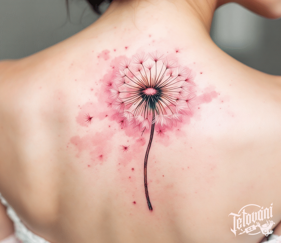 Tetování odkvetlá pampeliška na záda