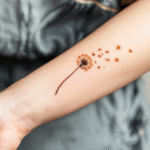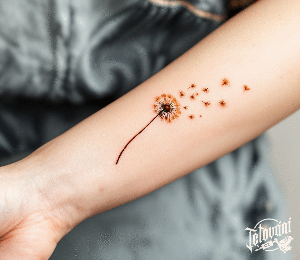 Tetování odkvetlá pampeliška s motýli na předloktí