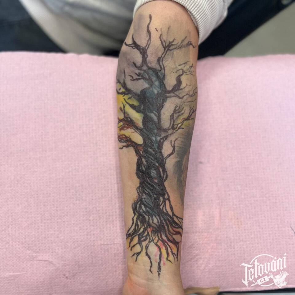 Tetování odpodaný strom na předloktí